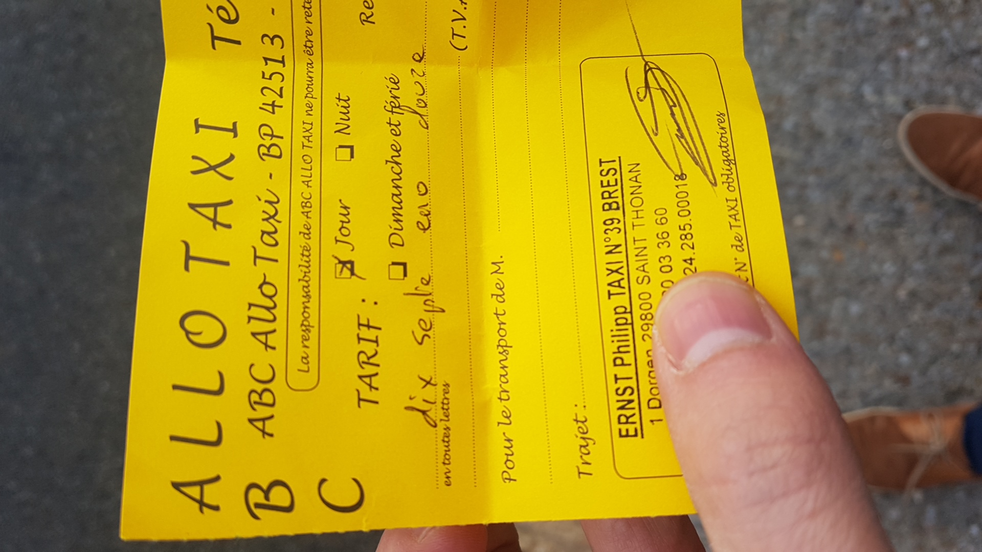 Je prend un taxi à la gare pour m'emmener à l'hôpital pour une visite. OK tout ce passe bien. Je demande au chauffeur de me donner le n° de tél pour que je puisse appeler un taxi une fois ma visite terminée. Et là, rien rien et rien ... personne ne décroche. J'ai appelé 5 fois en laissant sonner au moins 20 coups, rien. Donc nul nul et nul