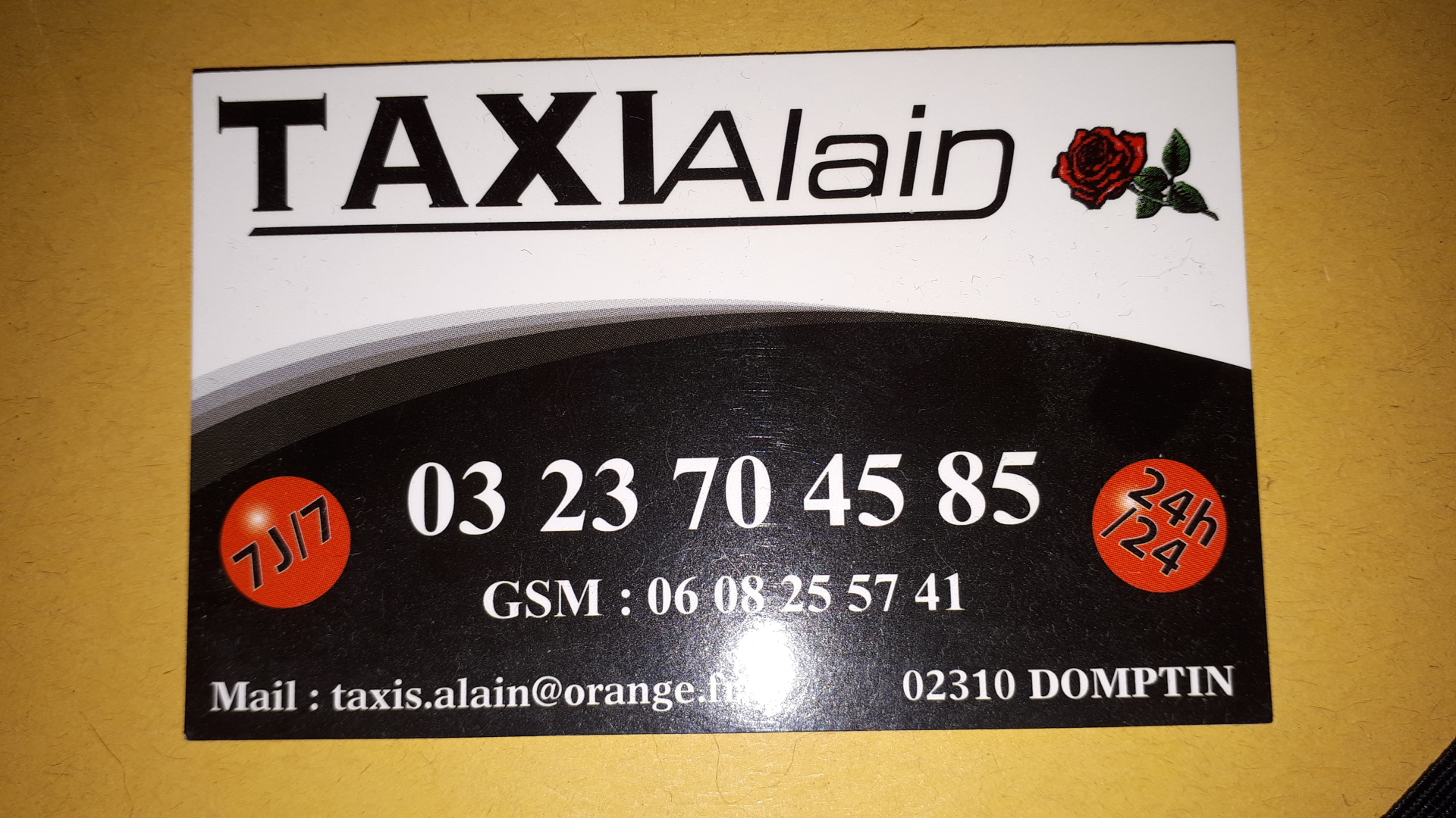 Alain est une personne très sympathique, mais très mal reçu par la femme à qui eu à faire au téléphone ! C'est la première fois que l'on me dit que l'on appelle pas un Taxi à une heure aussi tardive ! Je précise il était 19h45, et je voulais réserver une course pour le lendemain gare de la Ferté sous Jouarre à Gandelu. (23km) cette femme odieuse m'a également stipulé qu'il fallait impérativement faire un devis. France Australie j'aurais tout à fait compris ! Mais pour une course de 15 mn j'ai vraiment beaucoup de mal à comprendre. Cette personne devrait changer de métier !!!