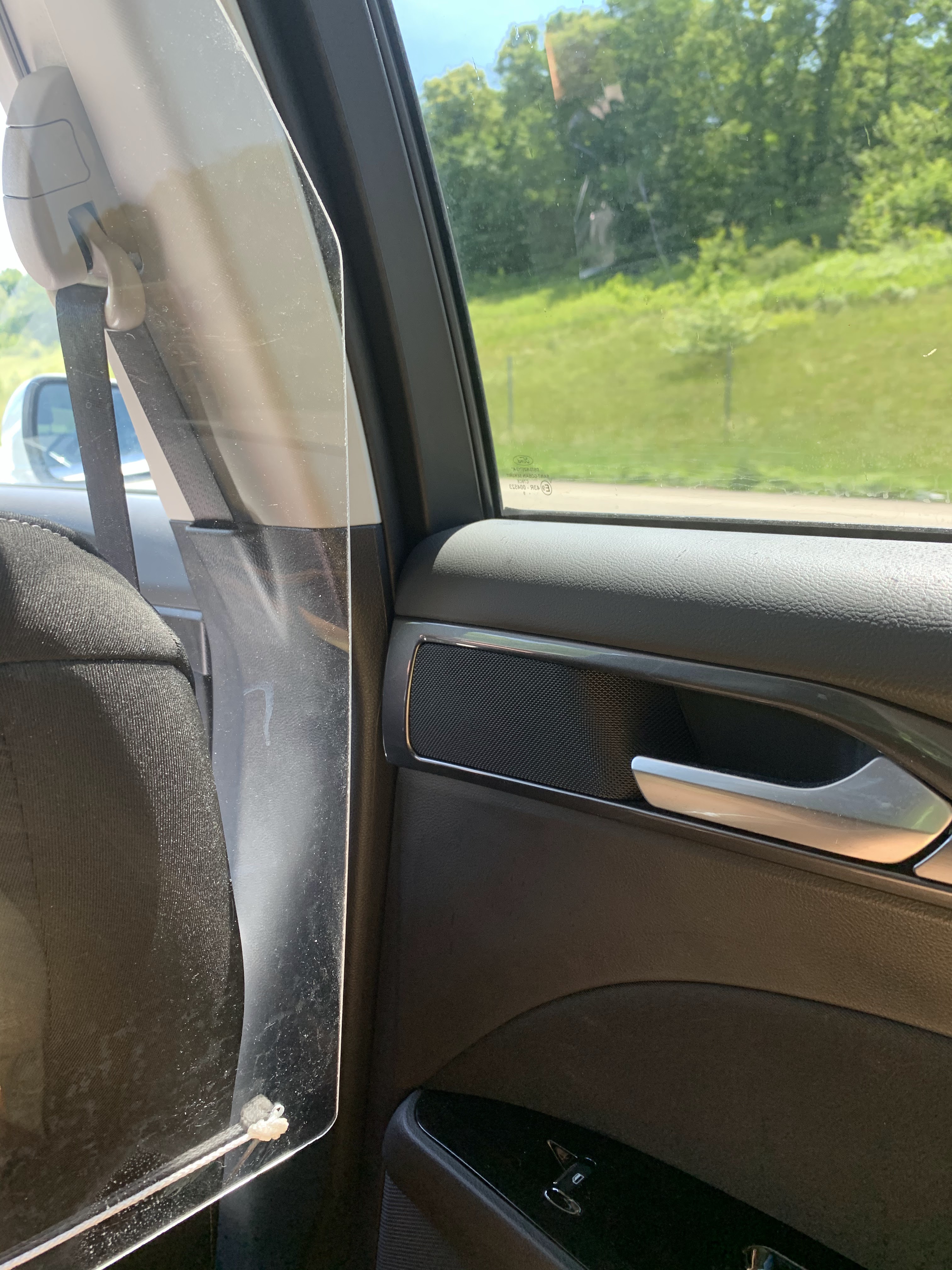 Taxi pro avec toutes les mesures de protection pour mettre le client à l’aise et en confiance comme la vitre de séparation entre le chauffeur et le client et le gel désinfectant.